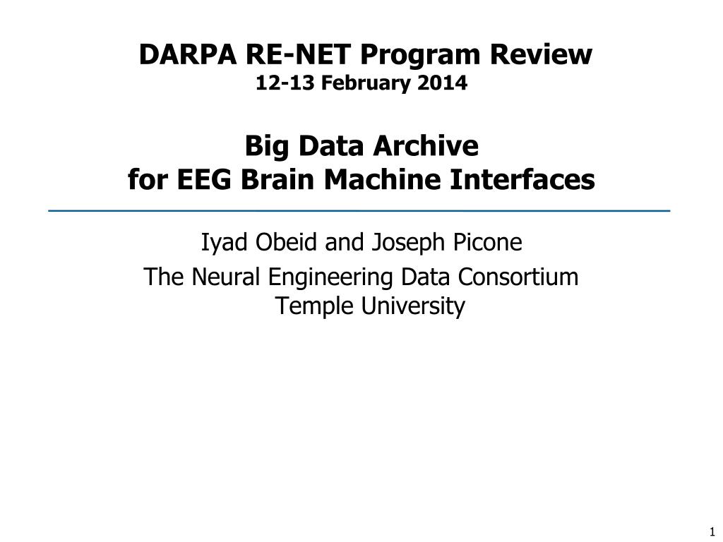 DARPA RE-NET Program Review12-13 February 2014Big Data Archive for EEG Brain Machine Interfaces Iyad Obeid and Joseph Picone The Neural Engineering Data ConsortiumTemple University