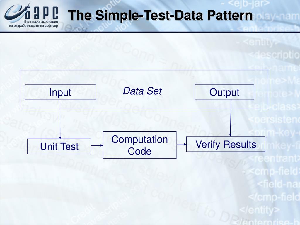 The Simple-Test-Data Pattern Data Set Input Output Computation Code Verify Results Unit Test