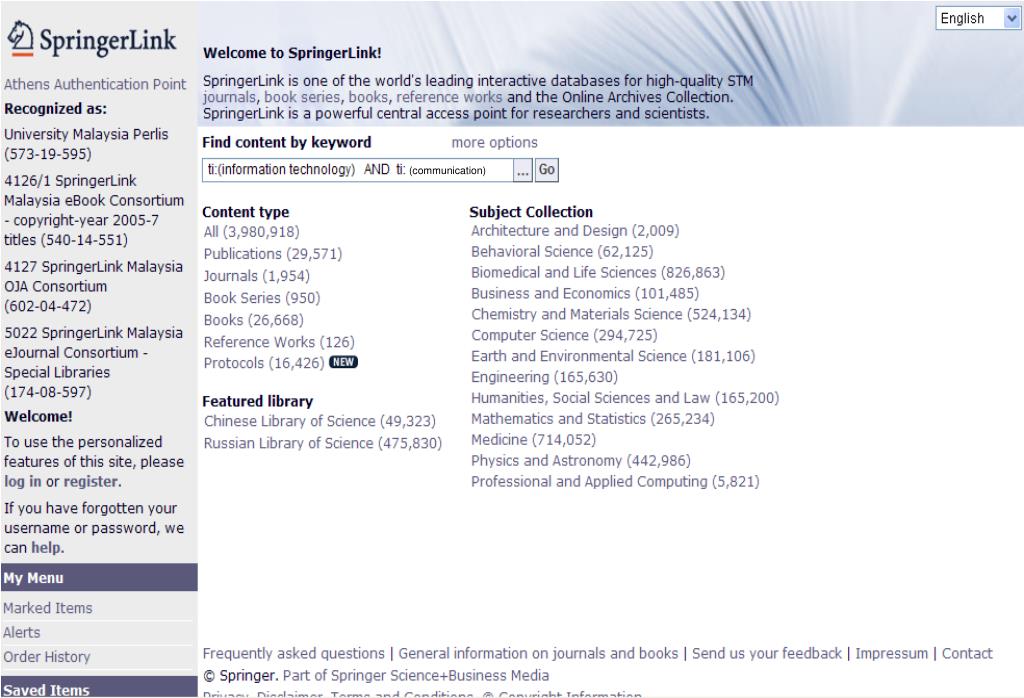 BKP ‘08 Sumber Elektronik AKTIVITI PENYELIDIKAN Remote Access EZ-Proxy • . EZ-Proxy membolehkan pengguna perpustakaan mencapai maklumat teks penuh daripada pelbagai lokasi di dalam dan luar negara tanpa batasan masa. Capaian maklumat dibuat melalui pelayan EZ-Proxy dan para pengguna hanya perlu memperkenalkan diri melalui kata nama dan kata laluan. Perpustakaan@UniMAP Perpustakaan@UniMAP