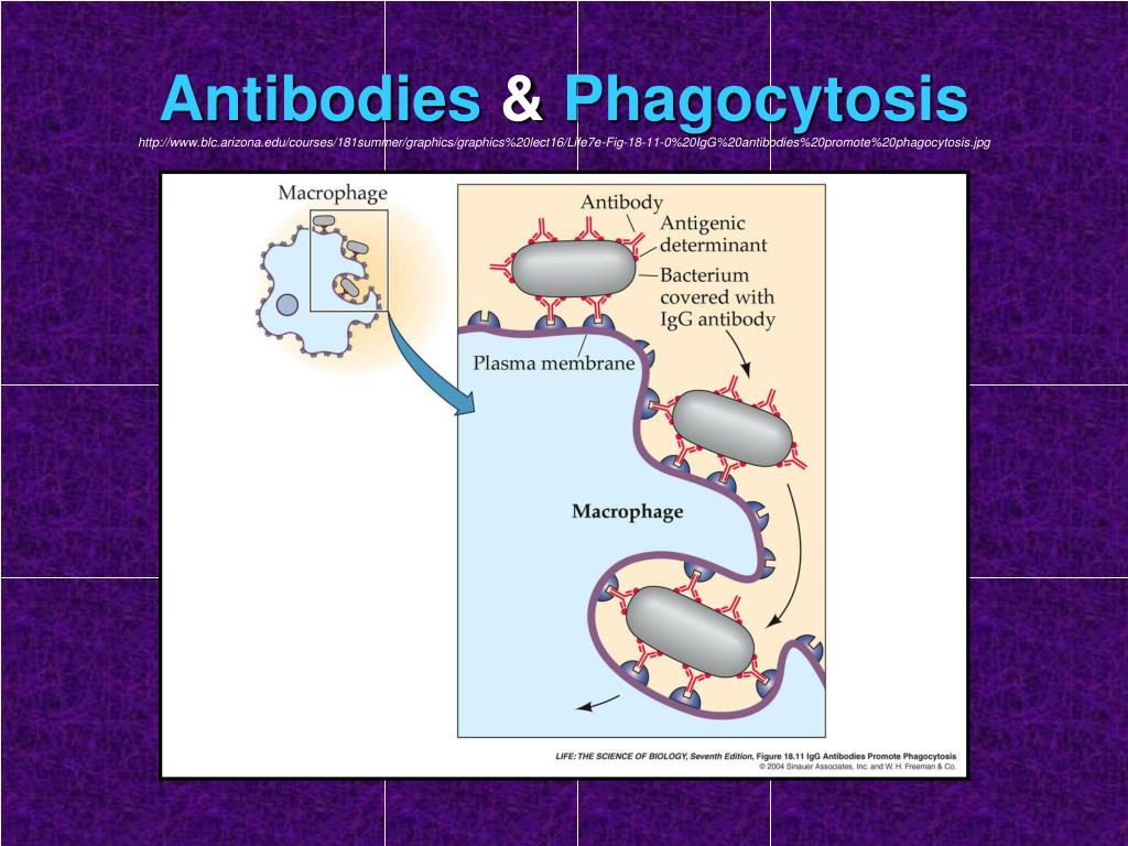 Antibodies& Phagocytosishttp://www.blc.arizona.edu/courses/181summer/graphics/graphics%20lect16/Life7e-Fig-18-11-0%20IgG%20antibodies%20promote%20phagocytosis.jpg