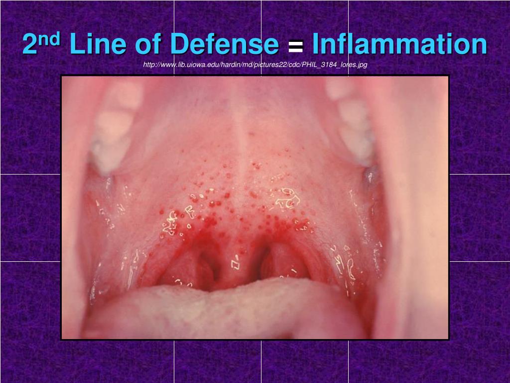 2nd Line of Defense = Inflammationhttp://www.lib.uiowa.edu/hardin/md/pictures22/cdc/PHIL_3184_lores.jpg