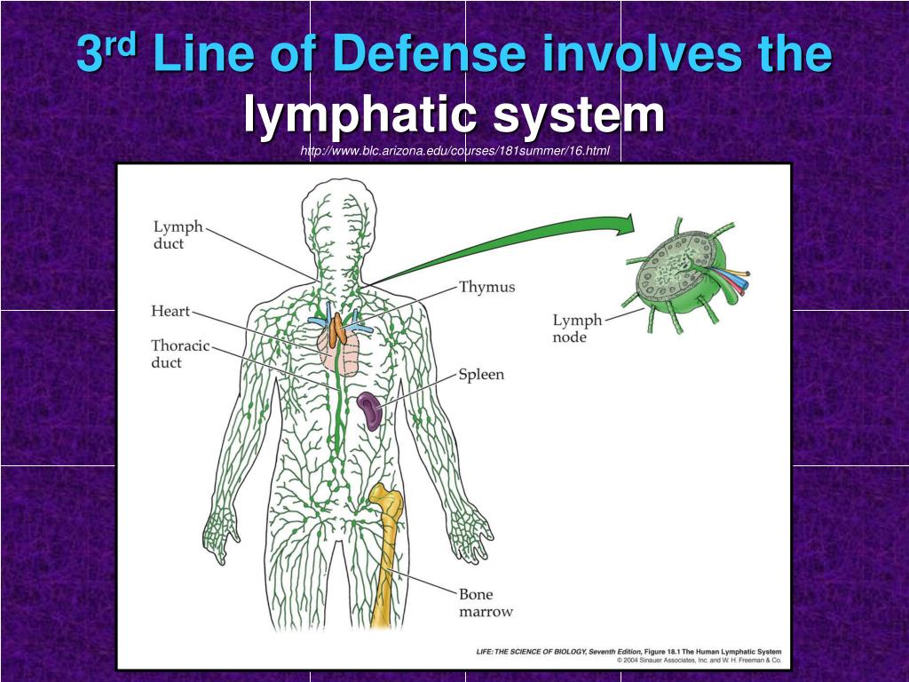 3rd Line of Defense involves the lymphatic systemhttp://www.blc.arizona.edu/courses/181summer/16.html