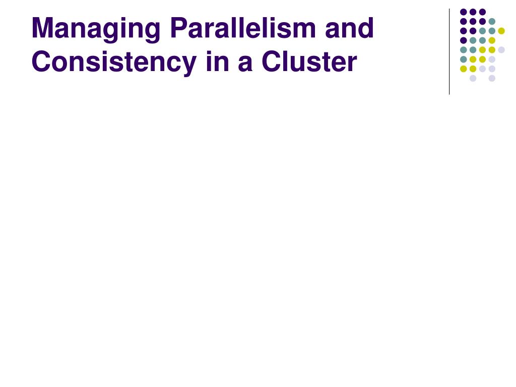 Distributed Locking vs. Centralized Management • Two approaches to locking: • Distributed • Consult with all other nodes before acquiring locks • Greater parallelism • Centralized • Consult with a designated node • Better for frequently updated metadata