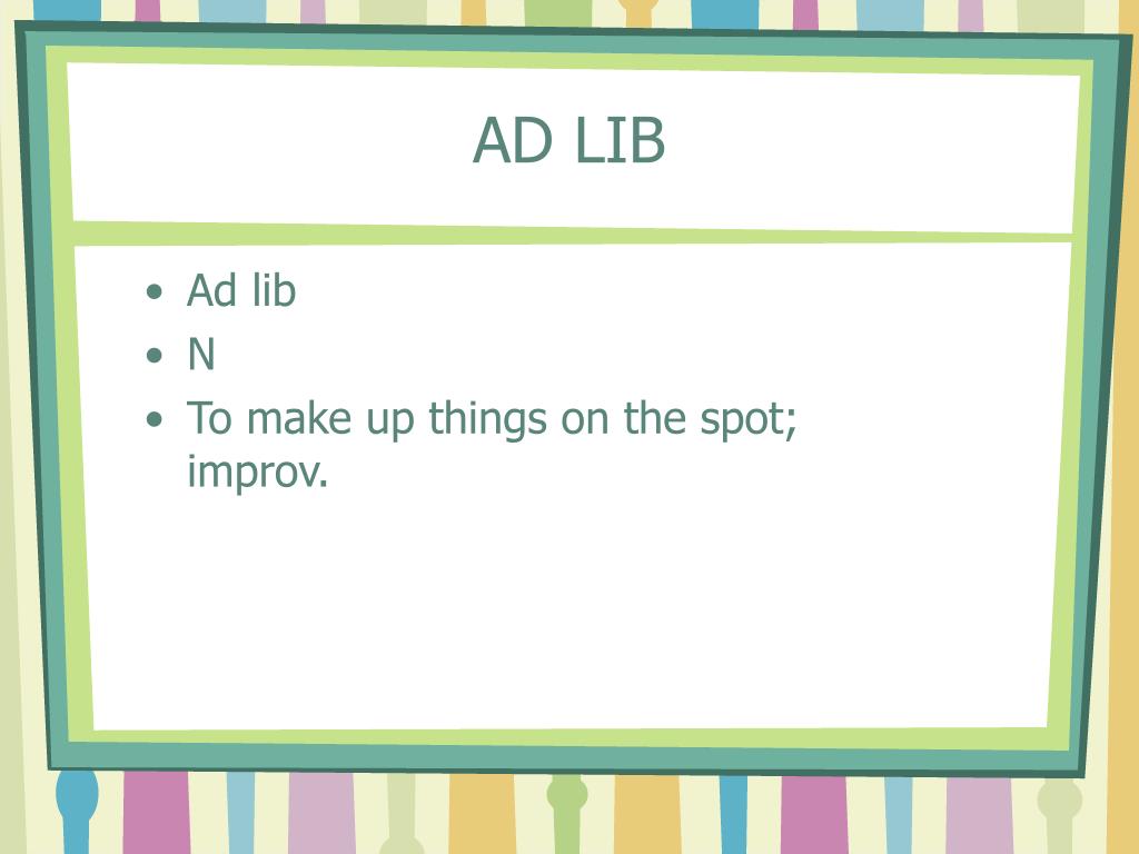 AD LIB • Ad lib • N • To make up things on the spot; improv.