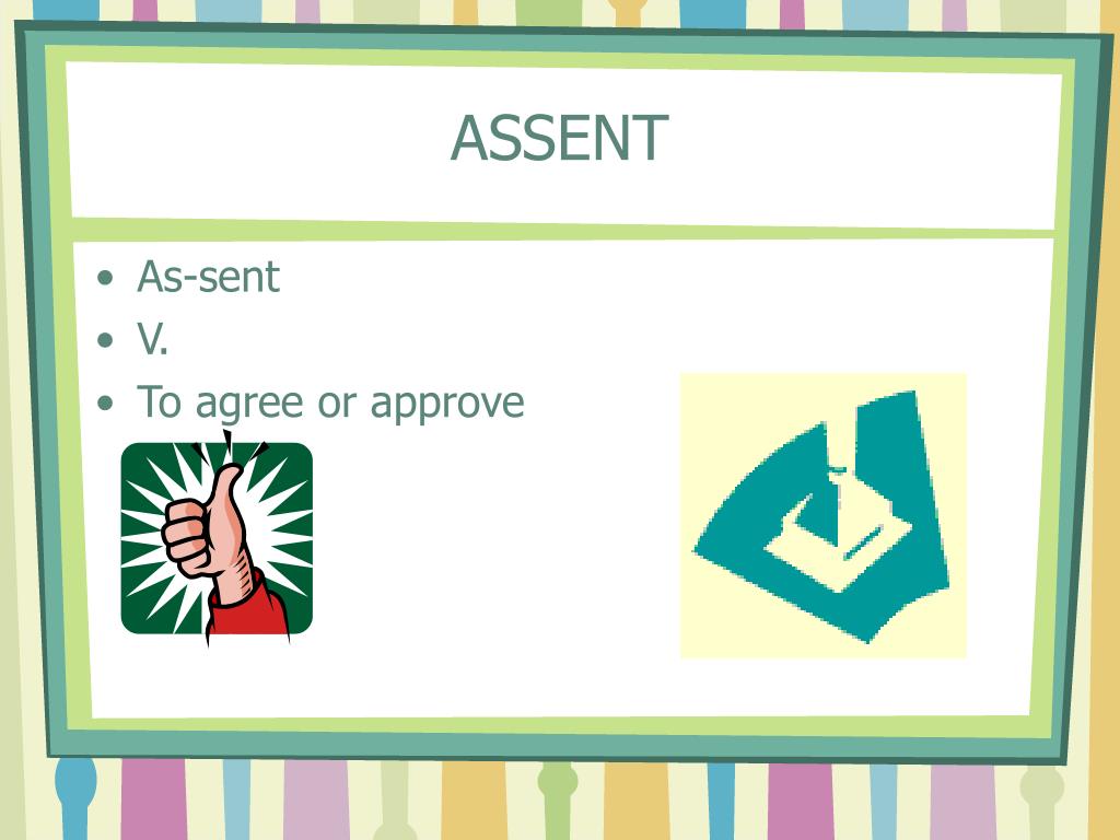 ASSENT • As-sent • V. • To agree or approve