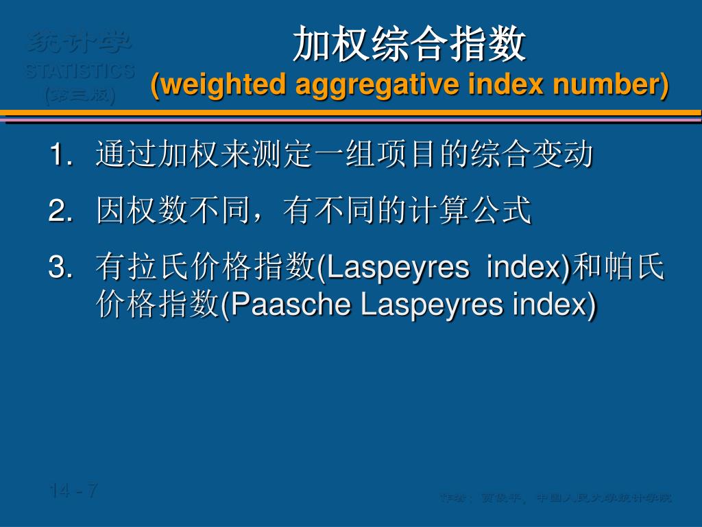 14.1加权指数 14.1.1 加权综合指数 14.1.2 加权平均指数