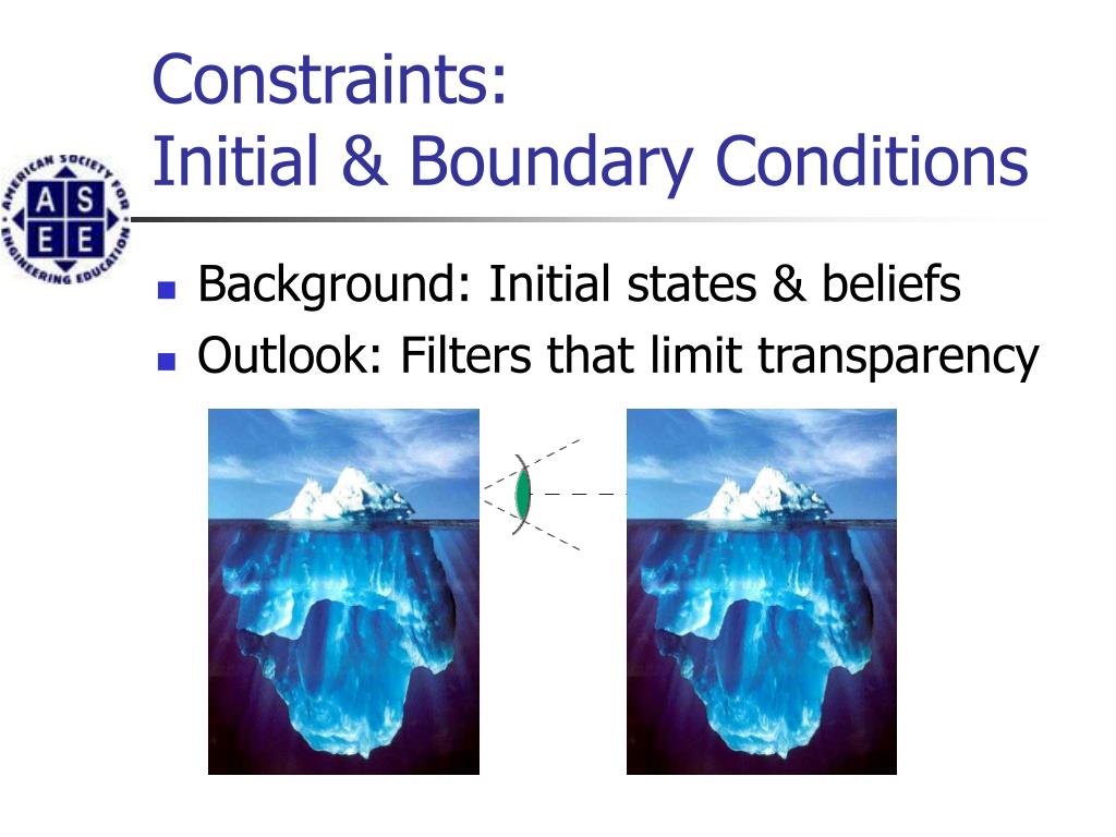 Constraints:Initial & Boundary Conditions • Background: Initial states & beliefs • Outlook: Filters that limit transparency