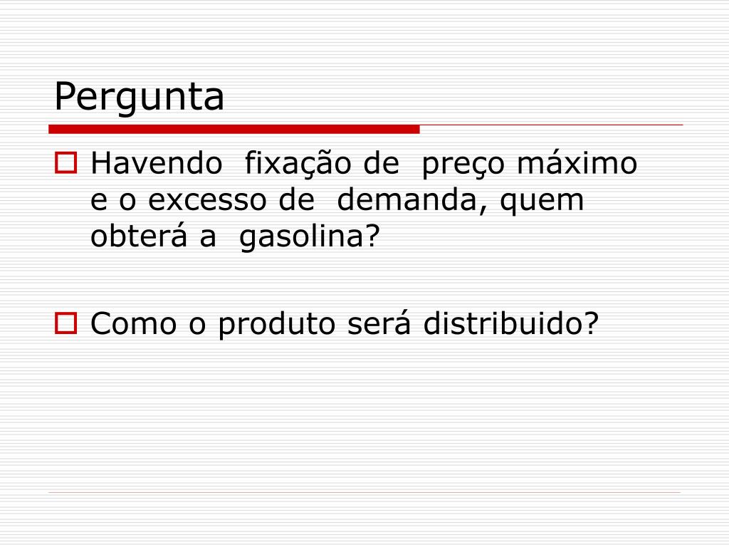 Pergunta • Havendo fixação de preço máximo e o excesso de demanda, quem obterá a gasolina? • Como o produto será distribuido?
