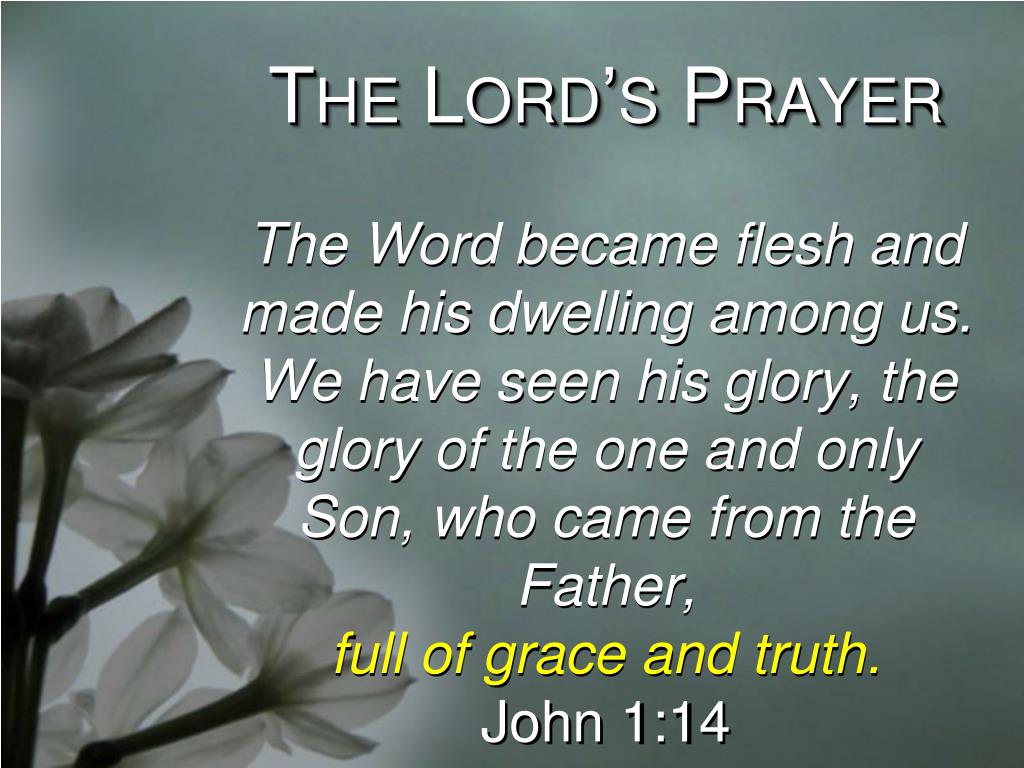 The Lord’s Prayer The Word became flesh and made his dwelling among us. We have seen his glory, the glory of the one and only Son, who came from the Father, full of grace and truth. John 1:14