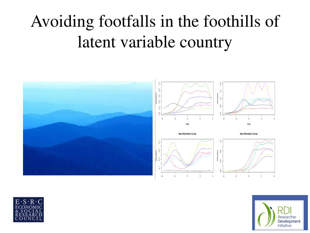Jumpstart Mplus for absolute beginners Tim Croudace tjc39@cam.ac.uk 1) Senior Lecturer (Psychometric Epidemiology) 2) Dept of Health Career Scientist (Public Health) Department of Psychiatry ESRC Funded Project Training in Applied Psychometrics Newnham College February 2008
