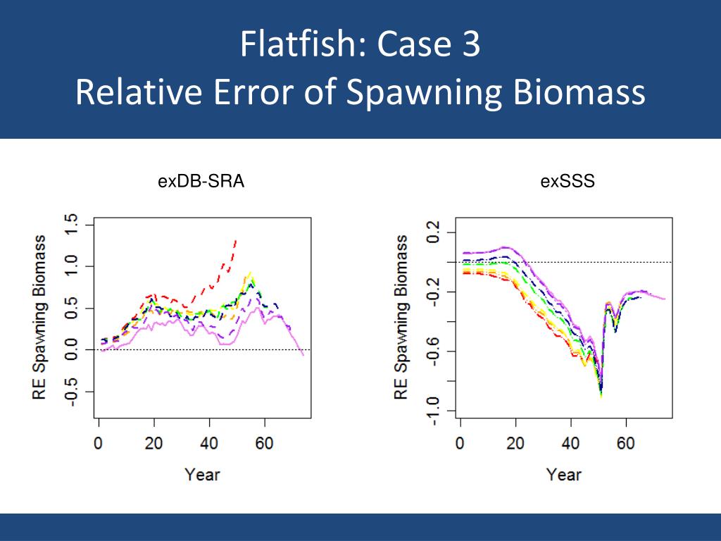 Flatfish: Case 3 Relative Error of Spawning Biomass exDB-SRA exSSS