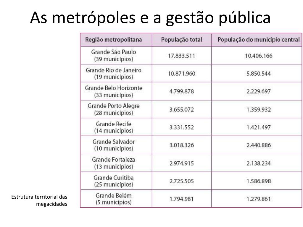 As metrópoles e a gestão pública Estrutura territorial das megacidades