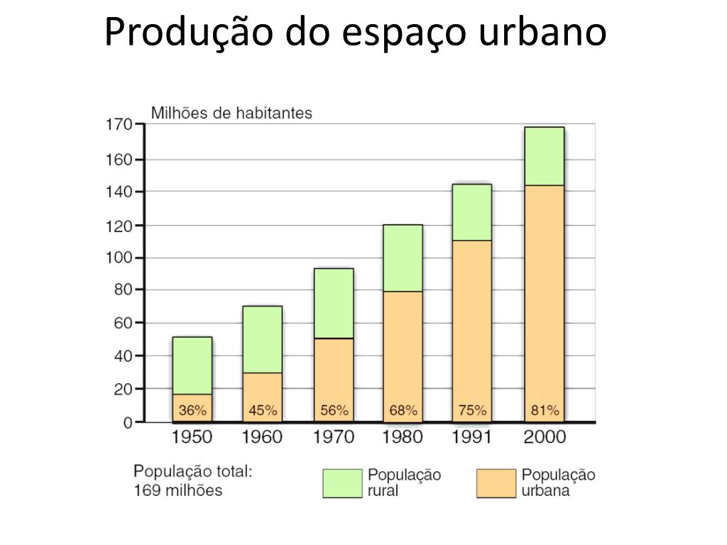 Urbanização Brasileira. Produção do espaço urbano. A urbanização ocorre quando há aumento da porcentagem da população urbana e está relacionada ao conjunto de intervenção no espaço urbano para melhores infraestruturas .