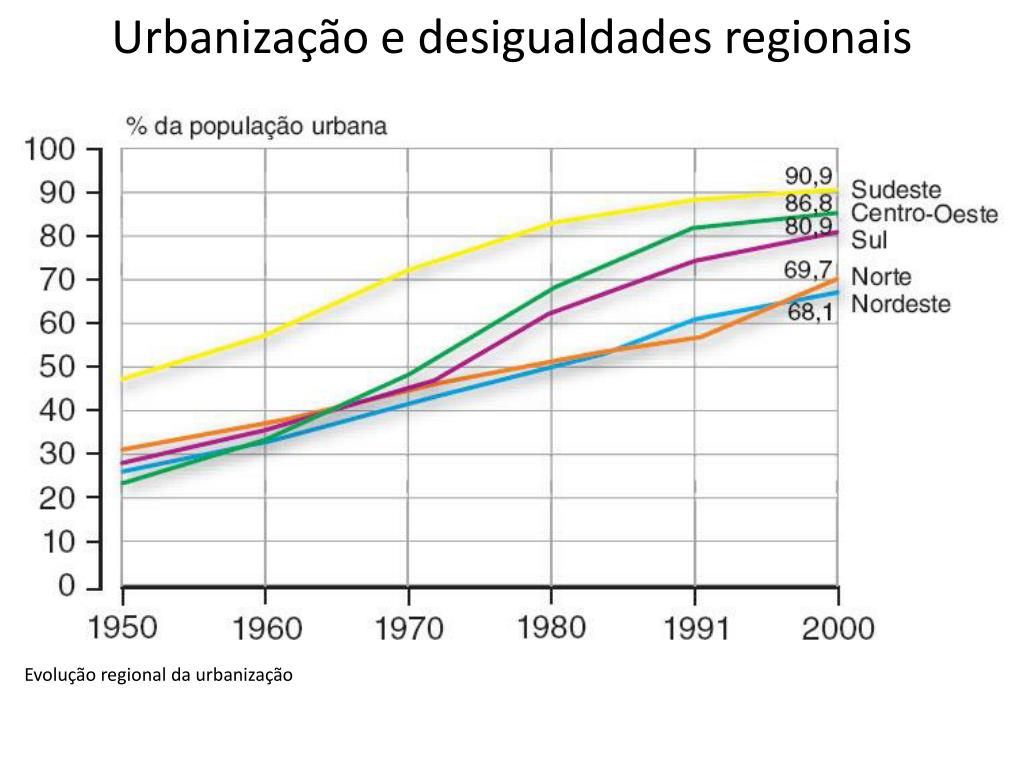 Urbanização e desigualdades regionais Evolução regional da urbanização