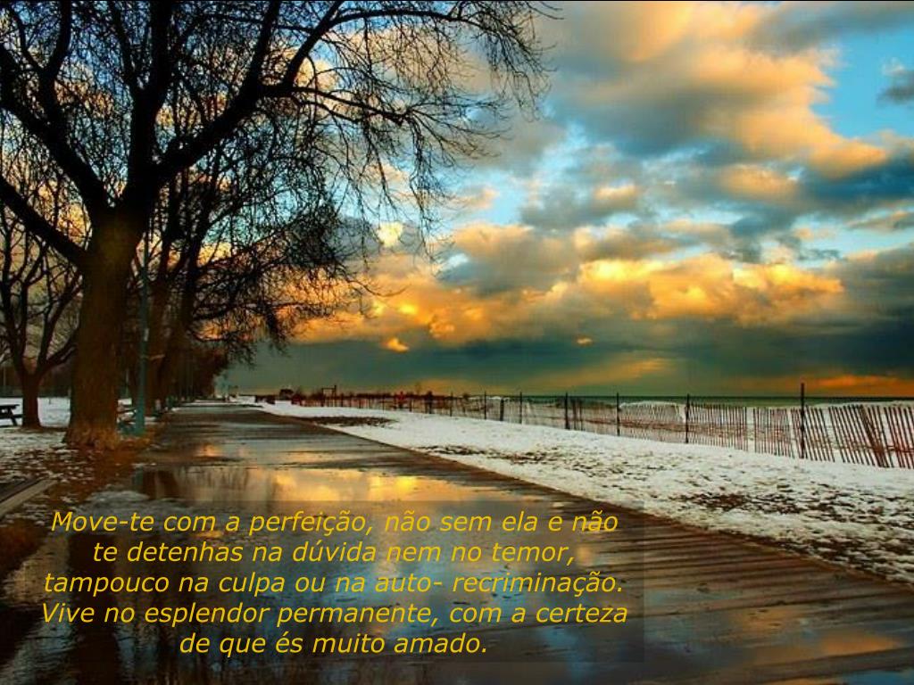 Move-te com a perfeição, não sem ela e não te detenhas na dúvida nem no temor, tampouco na culpa ou na auto- recriminação. Vive no esplendor permanente, com a certeza de que és muito amado.