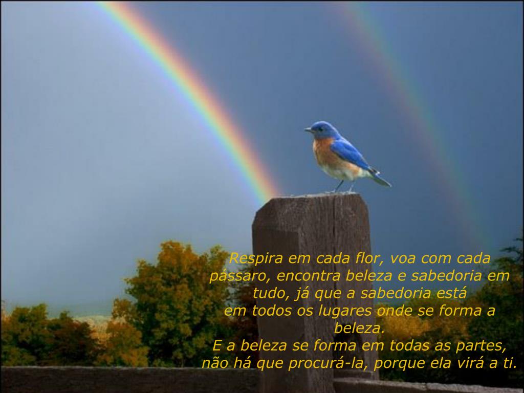 Respira em cada flor, voa com cada pássaro, encontra beleza e sabedoria em tudo, já que a sabedoria está em todos os lugares onde se forma a beleza. E a beleza se forma em todas as partes, não há que procurá-la, porque ela virá a ti.