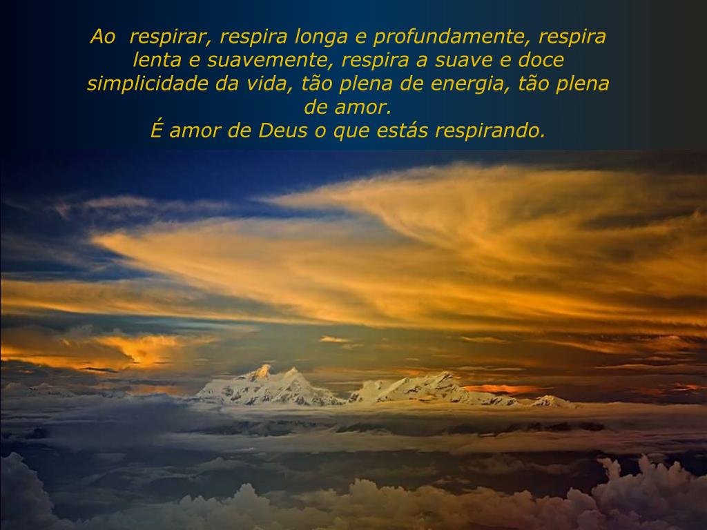 Ao respirar, respira longa e profundamente, respira lenta e suavemente, respira a suave e doce simplicidade da vida, tão plena de energia, tão plena de amor. É amor de Deus o que estás respirando.