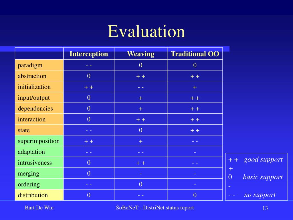 Evaluation + + good support + 0 basic support - - - no support Bart De Win