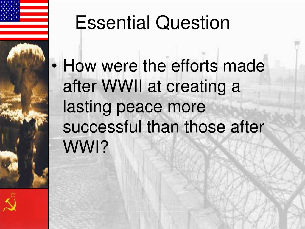Essential Question • How were the efforts made after WWII at creating a lasting peace more successful than those after WWI?
