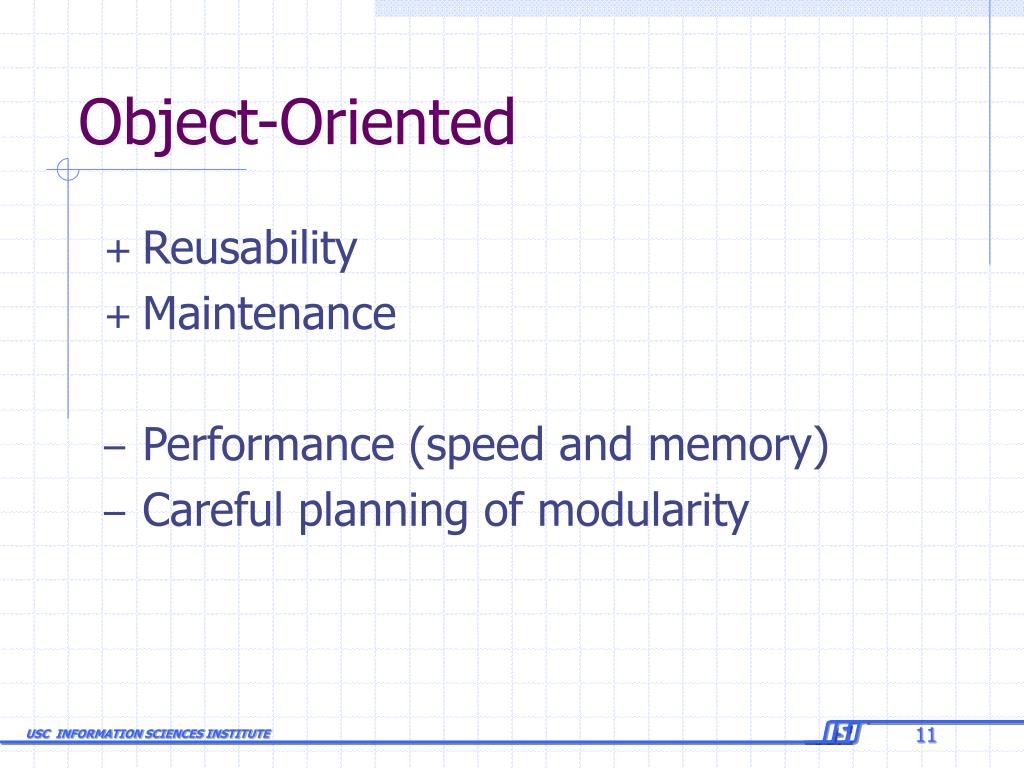 Object-Oriented • Reusability • Maintenance • Performance (speed and memory) • Careful planning of modularity