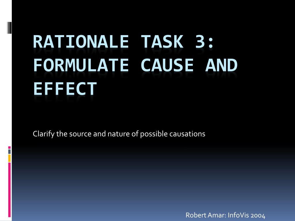 Clarify the source and nature of possible causations Rationale Task 3:Formulate Cause and Effect Robert Amar: InfoVis 2004