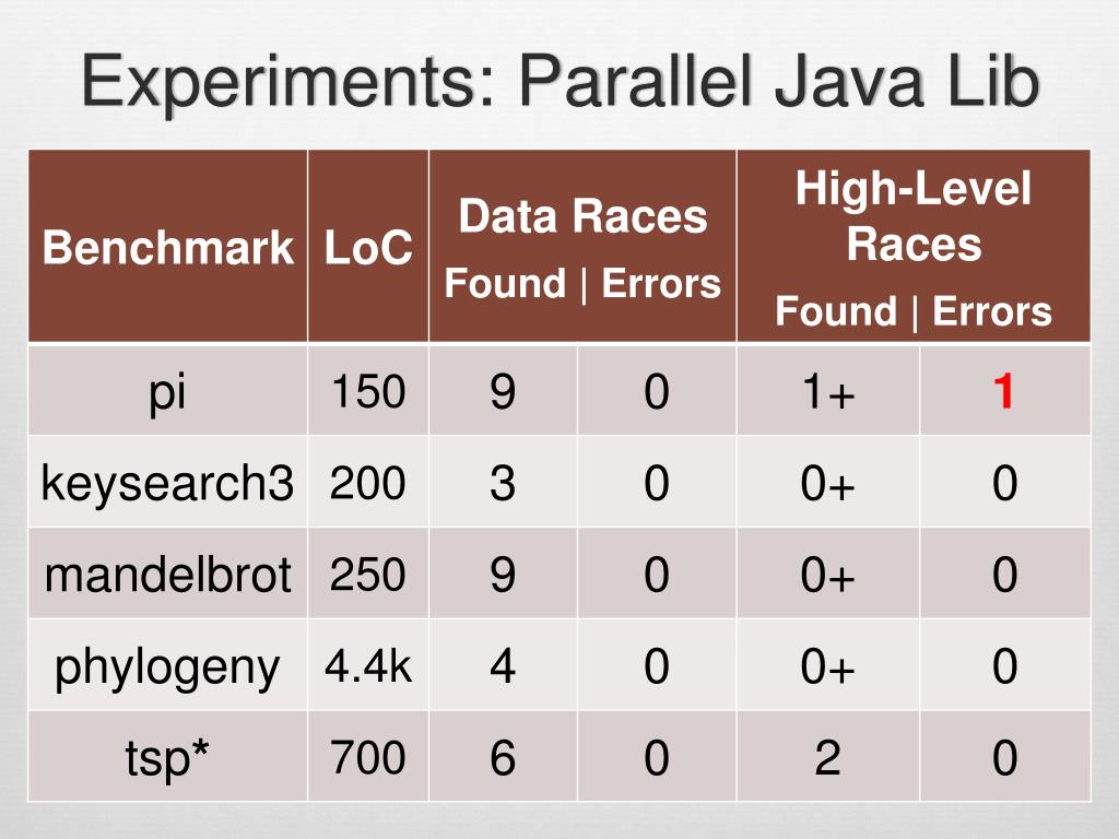 Experimental Evaluation • Across 13 benchmarks: • Found 40 data races. • 1 violates deterministic assertions.