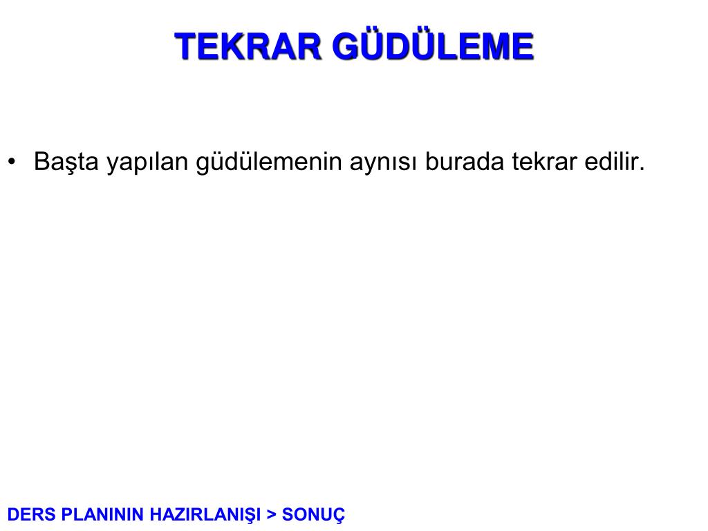 TEKRAR GÜDÜLEME • Başta yapılan güdülemenin aynısı burada tekrar edilir. DERS PLANININ HAZIRLANIŞI > SONUÇ