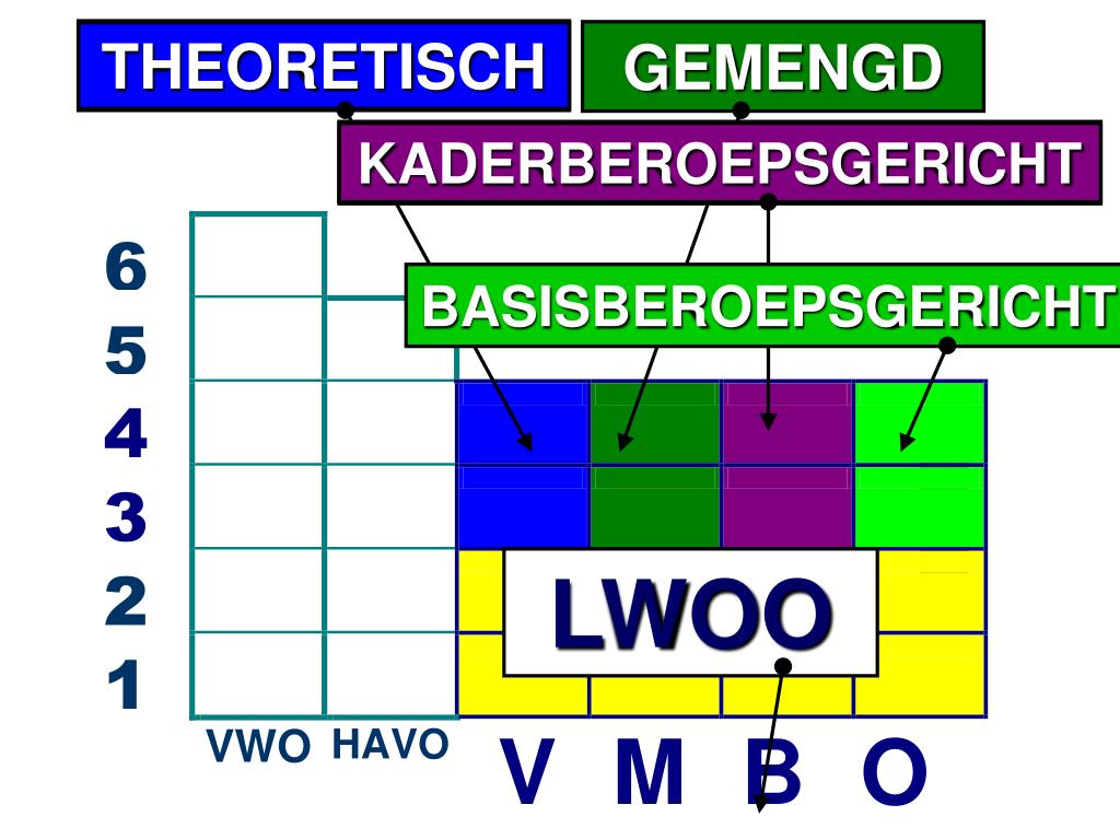 Leerwegenop het VMBO 1.Theoretische leerweg: Voor leerlingen die geen moeite hebben met studeren en daar voorlopig mee door willen gaan. Je kunt met deze leerweg ook naar de 4e klas HAVO. 6 algemene vakken niveau van de vakken: hoog geen beroepsgerichte vakken sluit aan op de twee hoogste niveaus van een vervolgopleiding in het MBO (3/4)