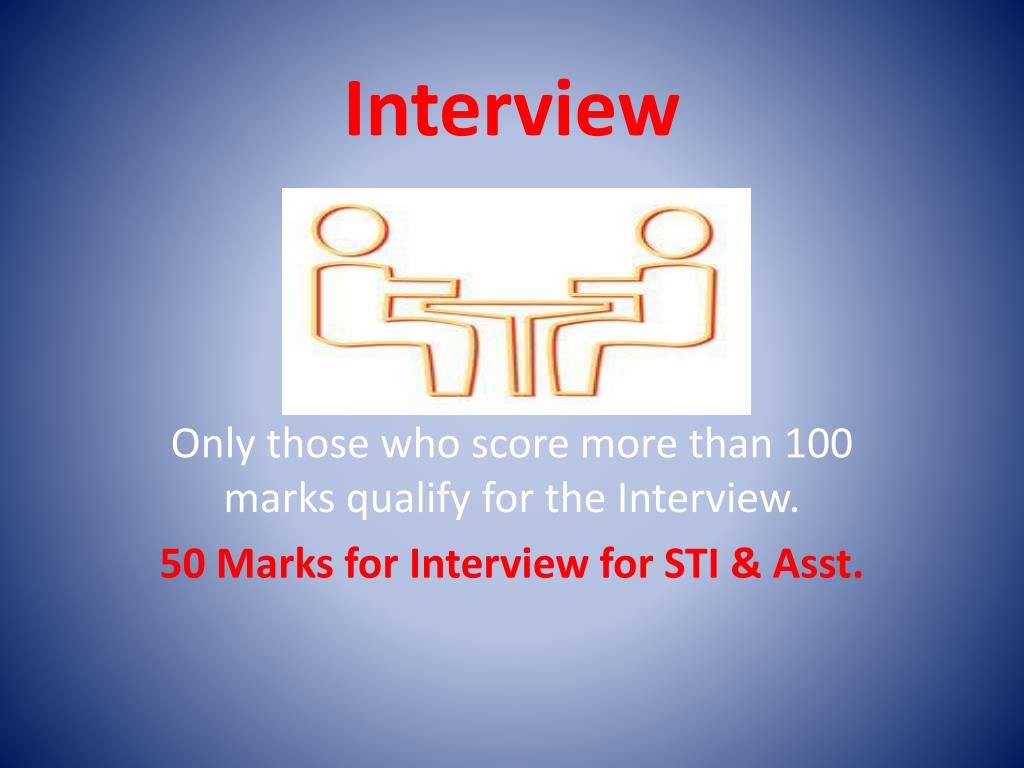 Interview Only those who score more than 100 marks qualify for the Interview. 50 Marks for Interview for STI & Asst.