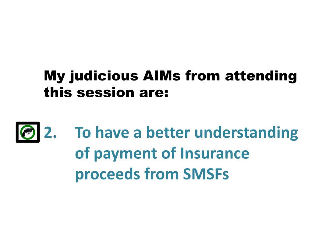 My judicious AIMs from attending this session are:2.To have a better understanding of payment of Insurance proceeds from SMSFs