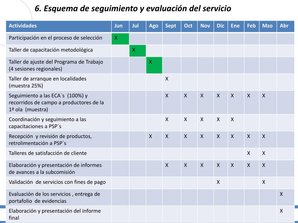 Seguimiento, capacitación y evaluación • Integración del Portafolio de evidencias • Elaboración y emisión del dictamen Se definen tres fases importantes: Informes mensuales a la Comisión Estatal Ver plan de capacitaciones por cadena... Resultados medibles y útiles para el productor
