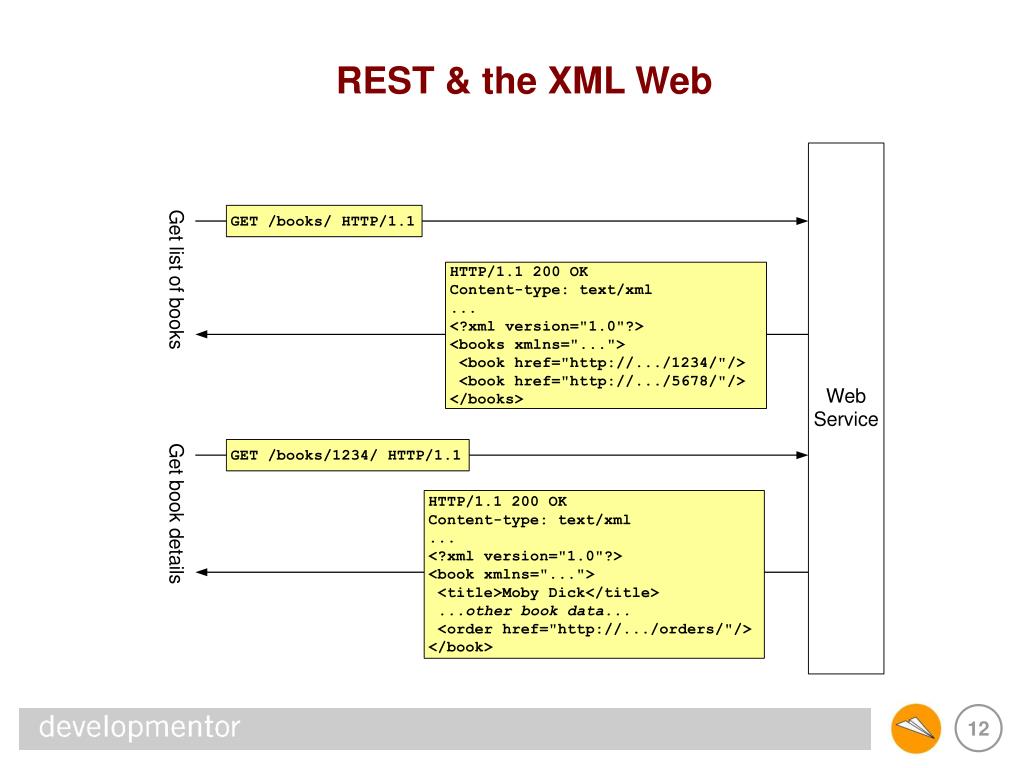 REST from a SOAP viewpoint: Counterpoint • SOAP & related technologies have broad industry support • While HTTP is entrenched, WS hype machine is at fever pitch • SOAP client & server toolkits are widely deployed • Tool support on client & server matters • SOAP headers provide a widely adopted extensibility model • Despite presence of HTTP extension mechanisms • WS specifications provide end-to-end protocols/features • HTTP/REST only provides point-to-point solutions • SOAP can be bound to other, non-HTTP transports • Important for richer XML messaging in the future • SOAP 1.2 can be used in a RESTful manner • "Can't we all just get along?"