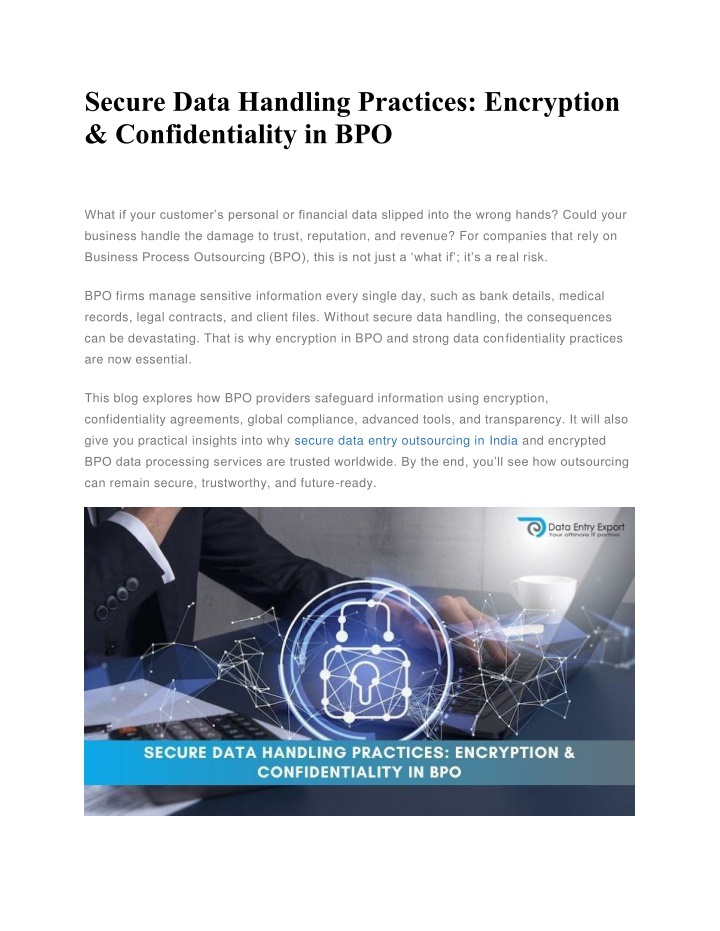 Secure Data Handling Practices Encryption & Confidentiality in BPO