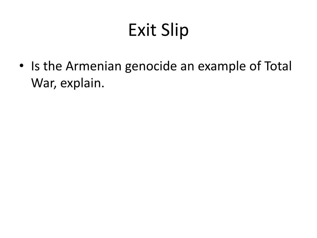 Exit Slip • Is the Armenian genocide an example of Total War, explain.