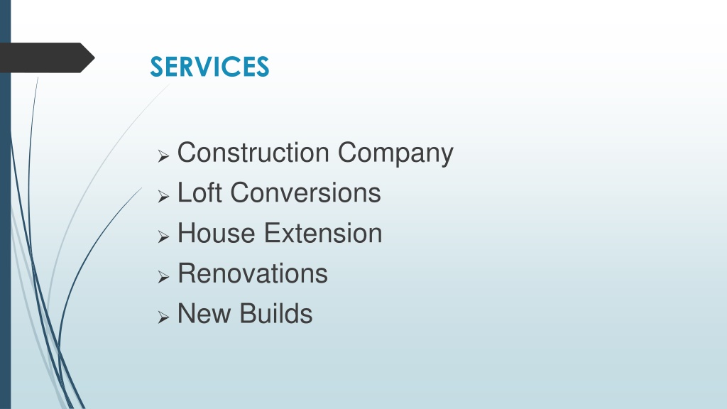 SERVICES • Construction Company • Loft Conversions • House Extension • Renovations • New Builds