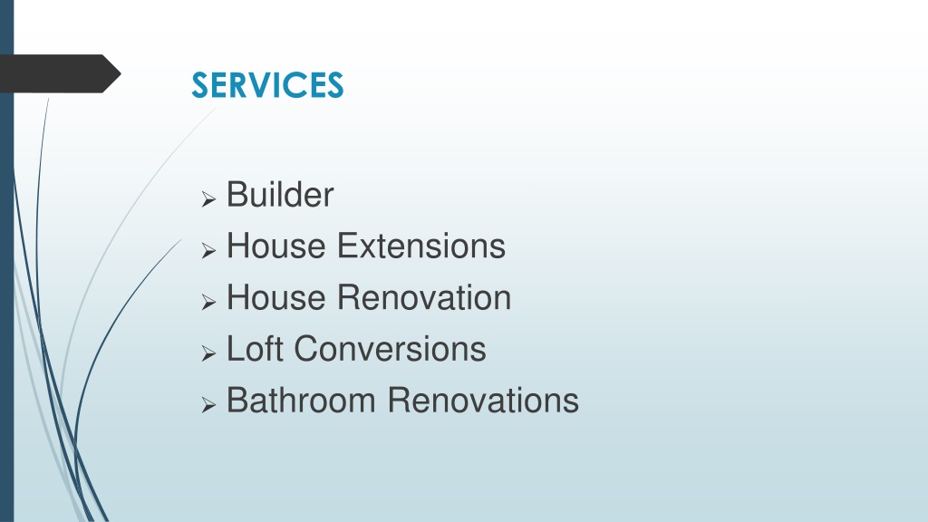 SERVICES • Builder • House Extensions • House Renovation • Loft Conversions • Bathroom Renovations