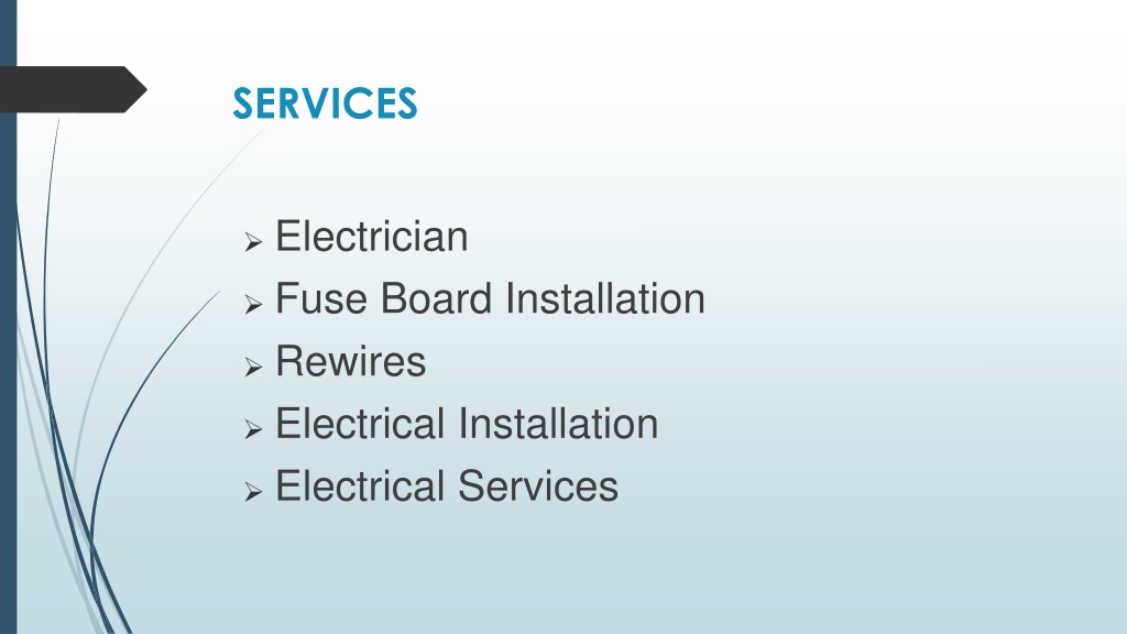 3. SERVICES • Electrician • Fuse Board Installation • Rewires • Electrical Installation • Electrical Services