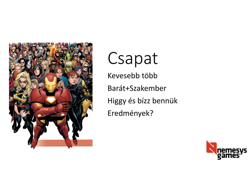 Nemesys + Umonit 2006-óta Indie játékfejlesztő PSN, Steam, web, mobil Fortix, Ignite, ACS, Pursued 2011 Dec – 2013 Márc 10x Program Columbus, Ohio