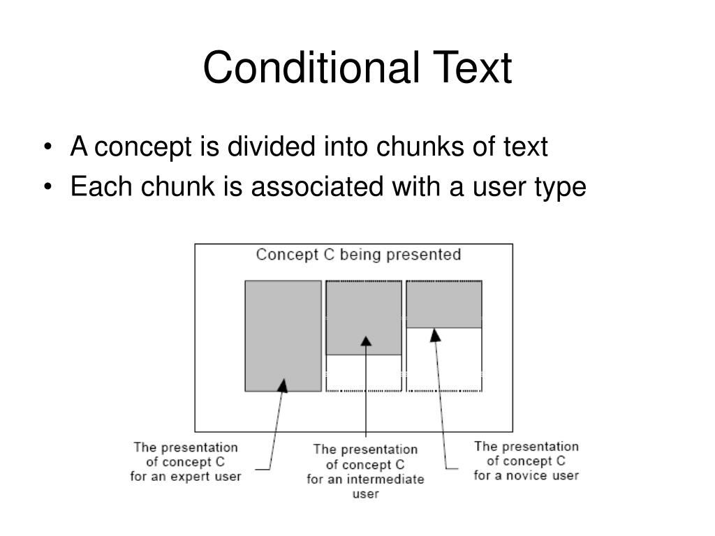 Conditional Text • A concept is divided into chunks of text • Each chunk is associated with a user type