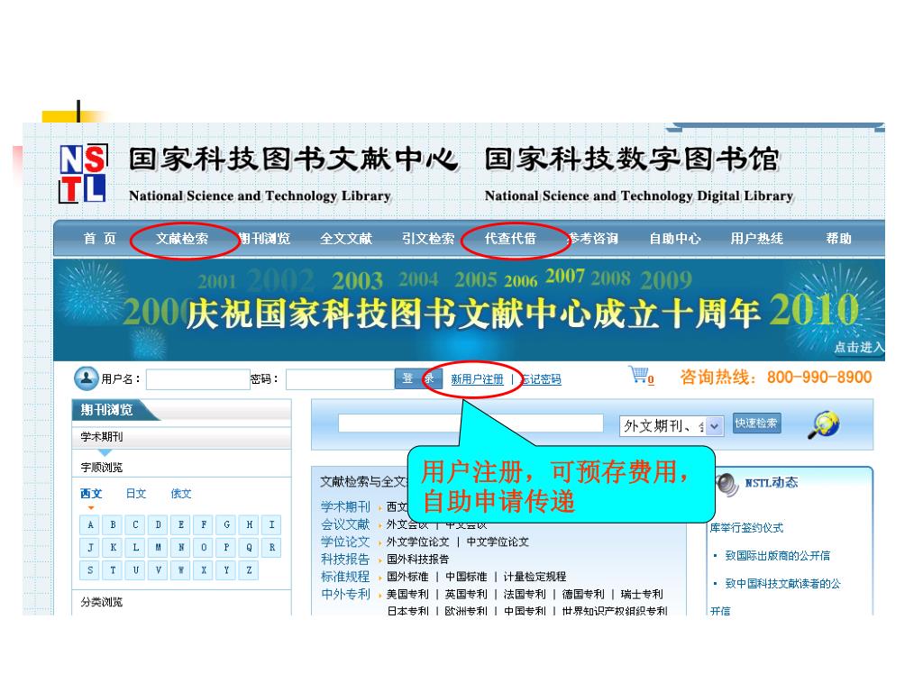 国家科技图书文献中心(NSTL) http://www.nstl.gov.cn/ 科技部组建,由中国科学院图书馆、工程技术图书馆(中国科学技术信息研究所、机械工业信息研究院、冶金工业信息标准研究院、中国化工信息中心)、中国农业科学院图书馆、中国医学科学院图书馆、中国标准化研究院、中国计量科学研究院等成员馆组成。