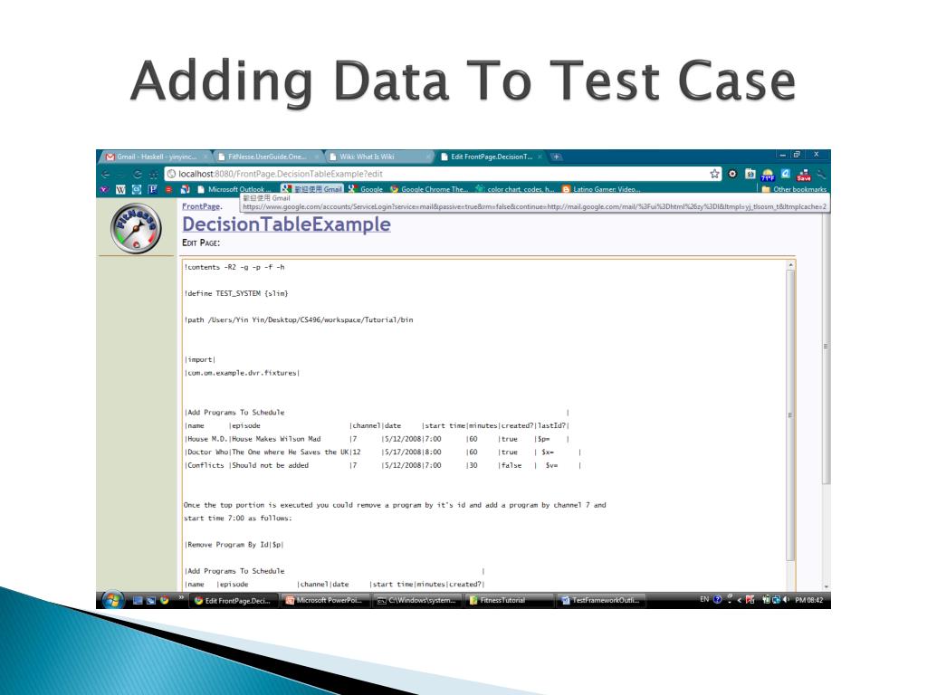 Overview • FitNesse is a user-friendly, open-source, lightweight framework for running test cases. • FitNesse reads test cases and compare the outcome to the expected results .