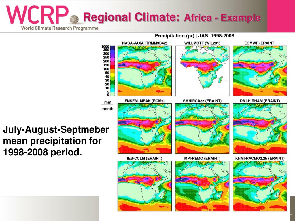 Regional Climate:Africa - Example July-August-Septmeber mean precipitation for 1998-2008 period.