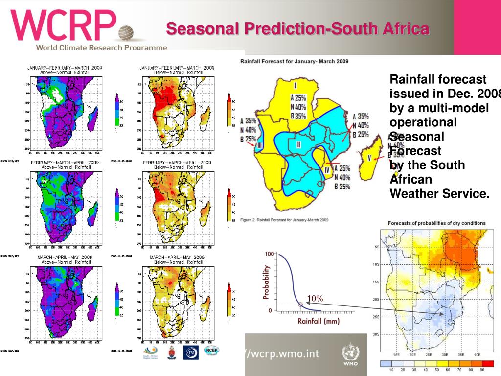Seasonal Prediction-South Africa Rainfall forecast issued in Dec. 2008 by a multi-model operational Seasonal Forecast by the South African Weather Service. 10%