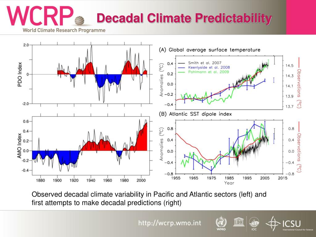 Decadal Climate Predictability Observed decadal climate variability in Pacific and Atlantic sectors (left) and first attempts to make decadal predictions (right)