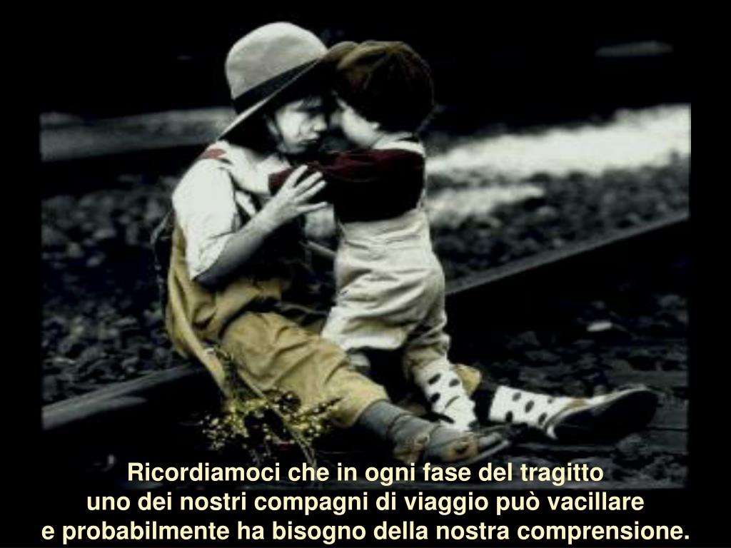 Ricordiamoci che in ogni fase del tragitto uno dei nostri compagni di viaggio può vacillare e probabilmente ha bisogno della nostra comprensione.