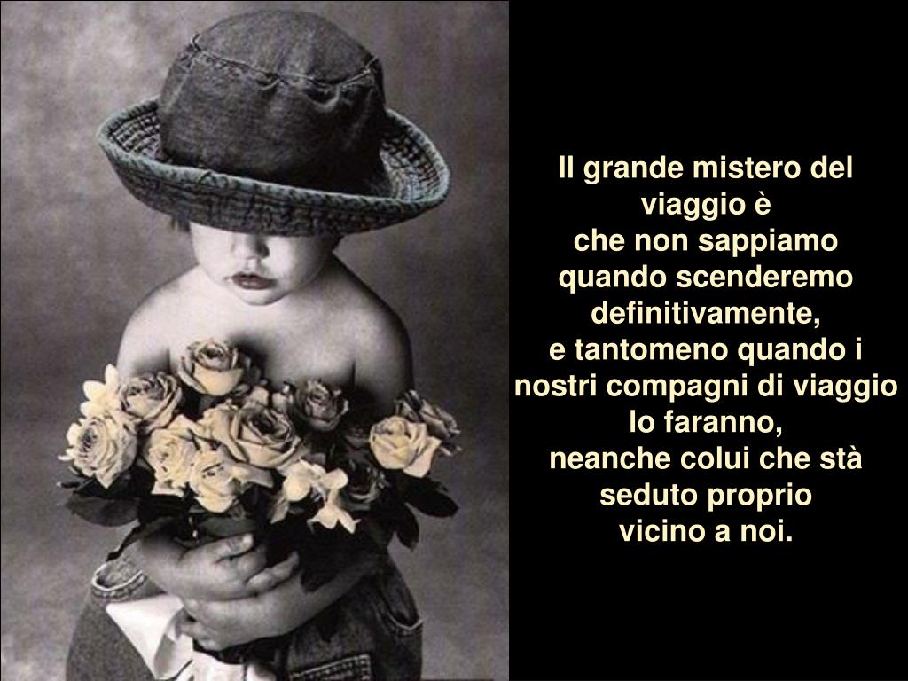 Il grande mistero del viaggio è che non sappiamo quando scenderemo definitivamente, e tantomeno quando i nostri compagni di viaggio lo faranno, neanche colui che stà seduto proprio vicino a noi.
