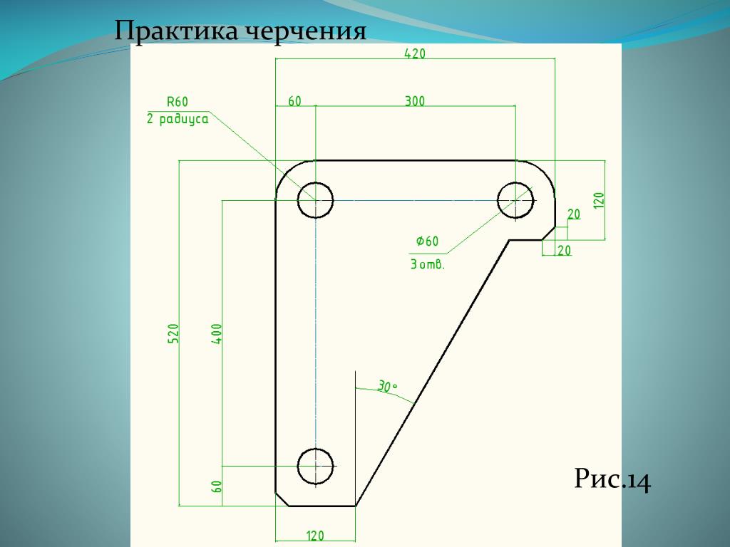 Практика черчения. Круговой массив. Сопряжения. Рис.5