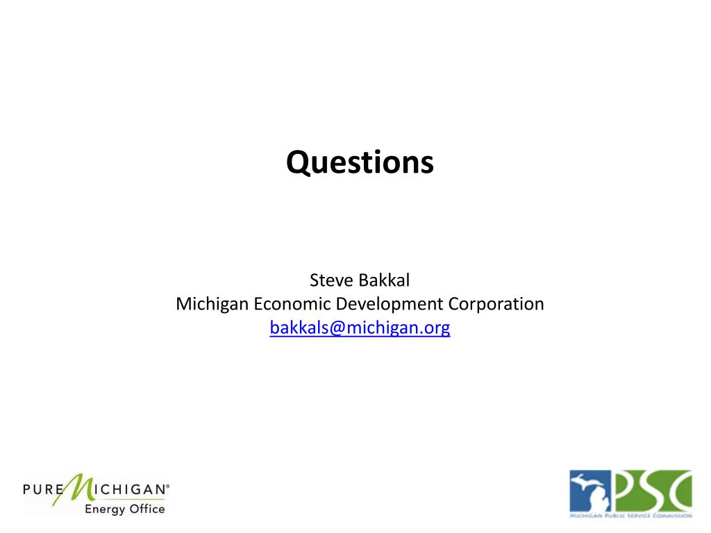Questions Steve BakkalMichigan Economic Development Corporation bakkals@michigan.org