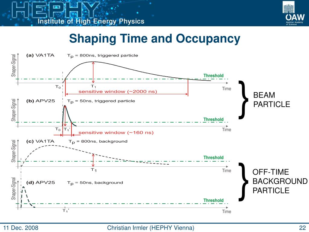 Shaping Time and Occupancy } BEAM PARTICLE } OFF-TIMEBACKGROUND PARTICLE Christian Irmler (HEPHY Vienna)