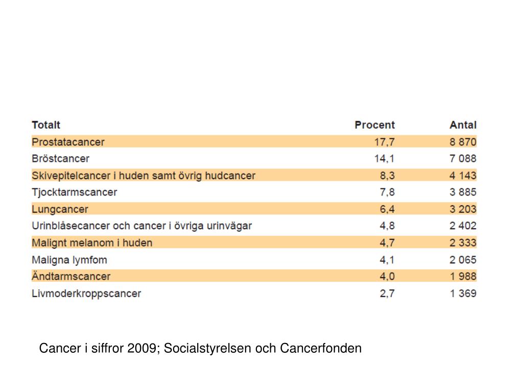 Epidemiologi för cancer Cancer i siffror 2009; Socialstyrelsen och Cancerfonden
